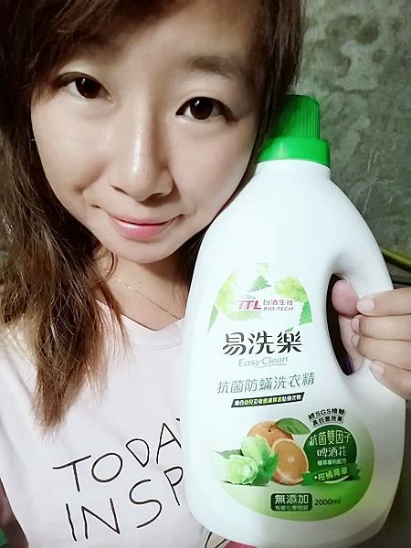 最近天天都跟林先生在玉米筍田忙採收在裡面鑽來鑽去的身上都是玉米花粉洗衣服時都深怕沒清洗乾淨導致皮膚過敏還好最近找到一款不錯的洗衣精就是【台酒生技易洗樂抗菌防螨洗衣精】